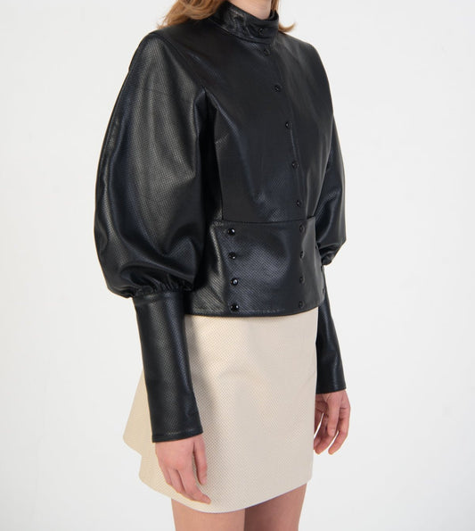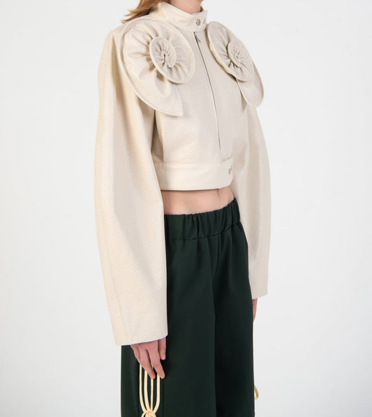 MALVINA LEATHER JACKET WITH APPLIQUÉ DETAILS