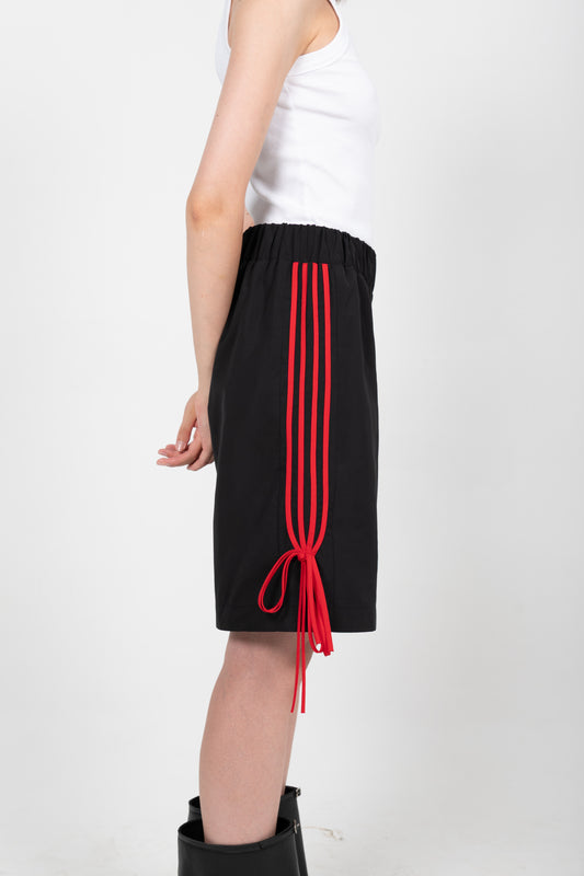 GIADA BOW/RED STRIPE NYLON SHORTS IN BLACK