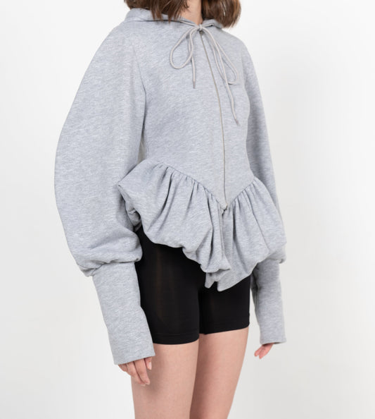 IRINA CUT-OUT HOODIE IN GREY MELANGE